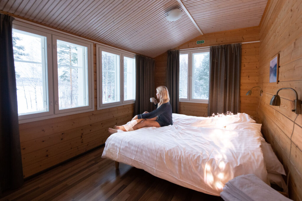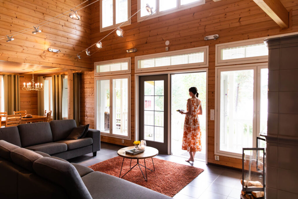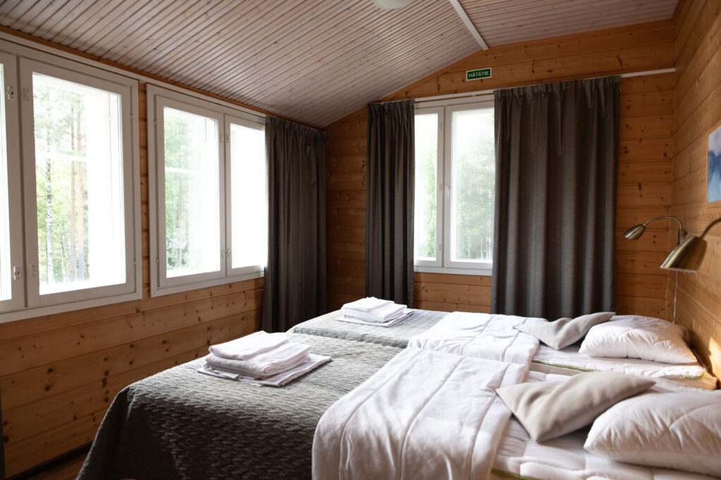 The Lakeside villas Sääksi and Norppa are located on peaceful shore of Lake Saimaa. Villas have private shores with jetties, small sandy beaches, fireplaces and traditional wood heated lakeside saunas with hot tub. Between the villas is a shared activity court where you can play badminton. Otherwise, the villas are surrounded by a traditional rural landscape with forests and fields.