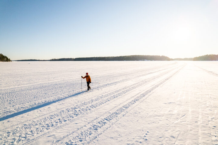 Die schönste Eisroute Finnlands führt von Oravi durch den Nationalpark Linnansaari bis nach Rantasalmi – oder umgekehrt. Die Gesamtlänge der markierten Winterwanderroute auf dem Eis beträgt je nach Wetterbedingungen bis zu 20 km pro Strecke.