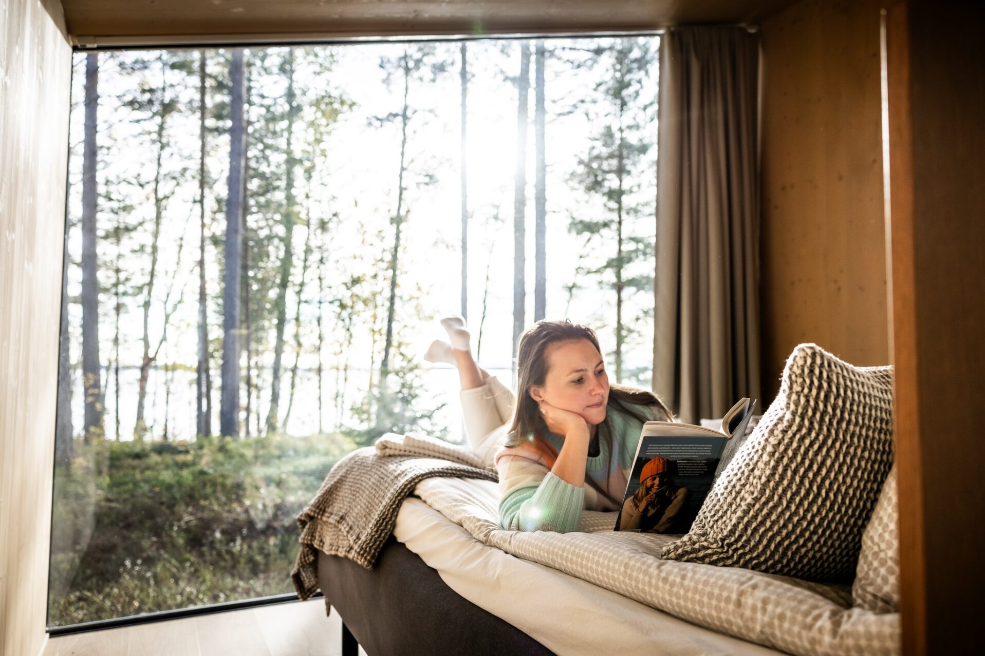 Aus den raumhohen Fenstern der neun identischen, mit hochwertigen Materialien ausgestatteten Villen eröffnet sich ein herrlicher Blick auf den Oravi-Kanal, den klaren Saimaa-See und den Nationalpark Linnansaari. Die hellen und geräumigen Ferienhäuser sind die perfekte Wahl für Reisende, die Qualität und Naturverbundenheit gleichermaßen schätzen.