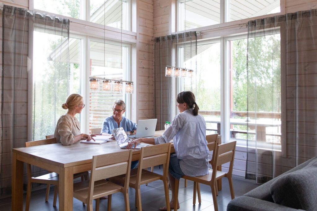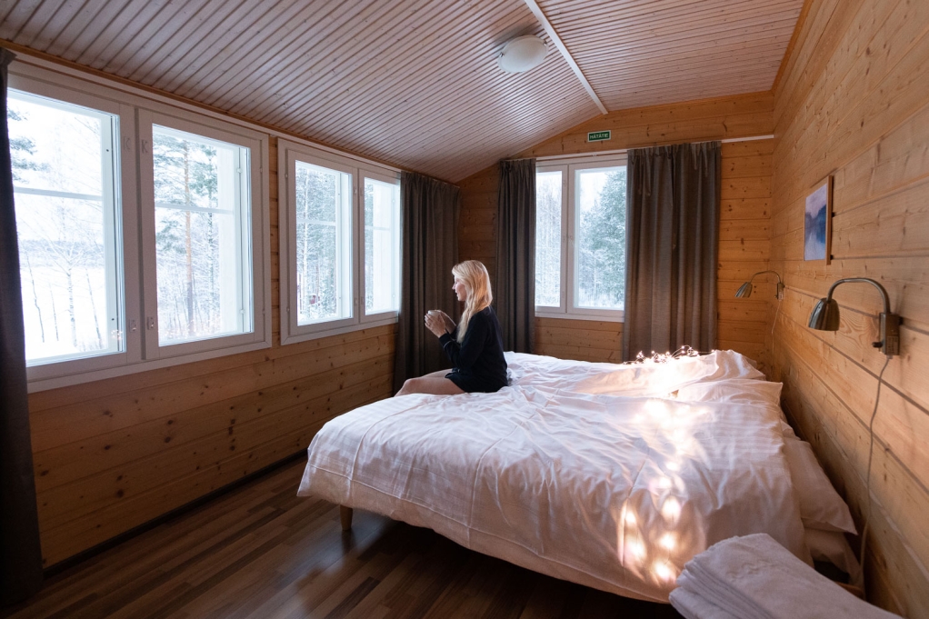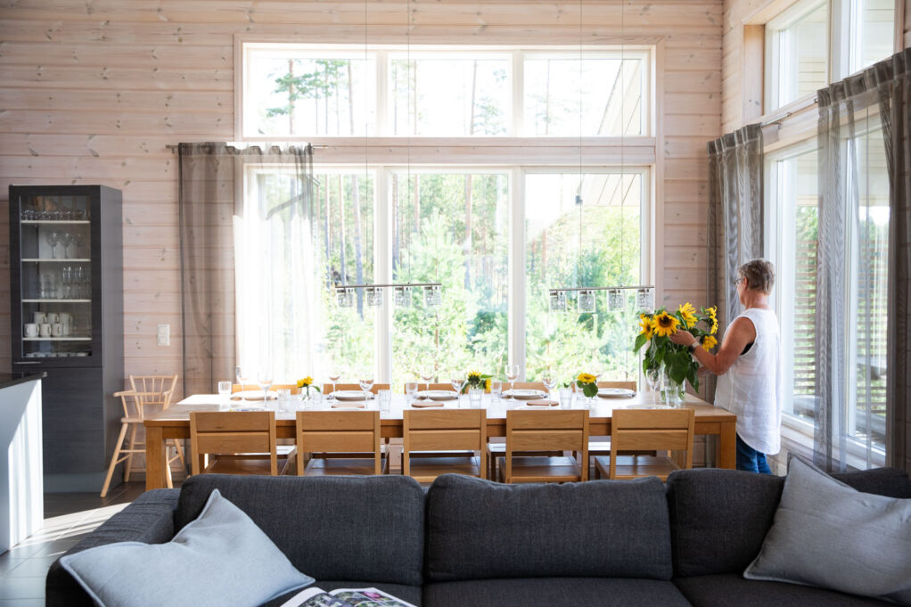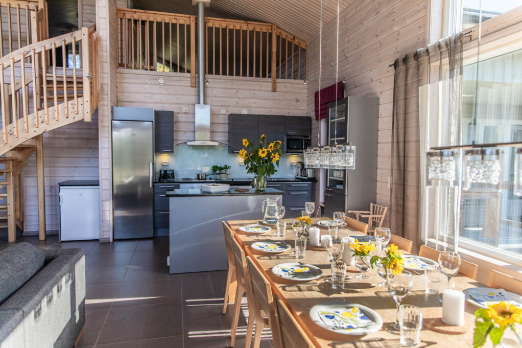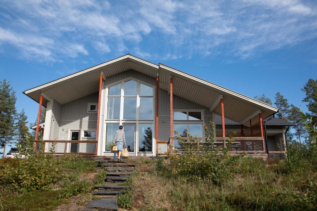 Tallusniemi is located on a beautiful spot about 12 km drive from Oravi village. The villa is styled with a Finnish twist, a lot of wood and natural materials, space and light colours. Here you can live in luxury surroundings close to nature. The villa has a private shore and full lake view from the house. There is also a small sandy beach and a children’s playground near the villa.
