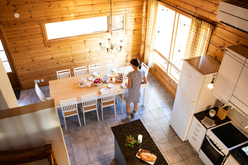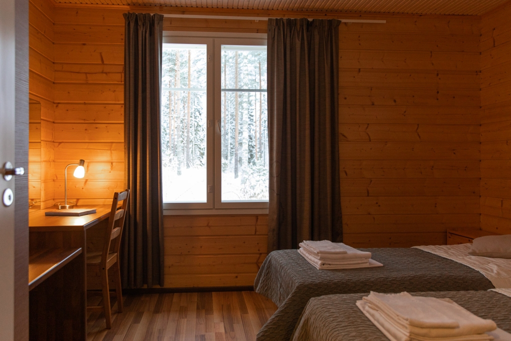 Kun varaat Oravin huvilan 4:lle hengelle on käytössäsi huvilan alakerta. Alakerrassa on kaksi makuuhuonetta, keittiö, olohuone, wc, pyykkitilat ja saunaosasto. Yläkerta (2 makuuhuonetta ja wc) on tällöin pois käytöstä.